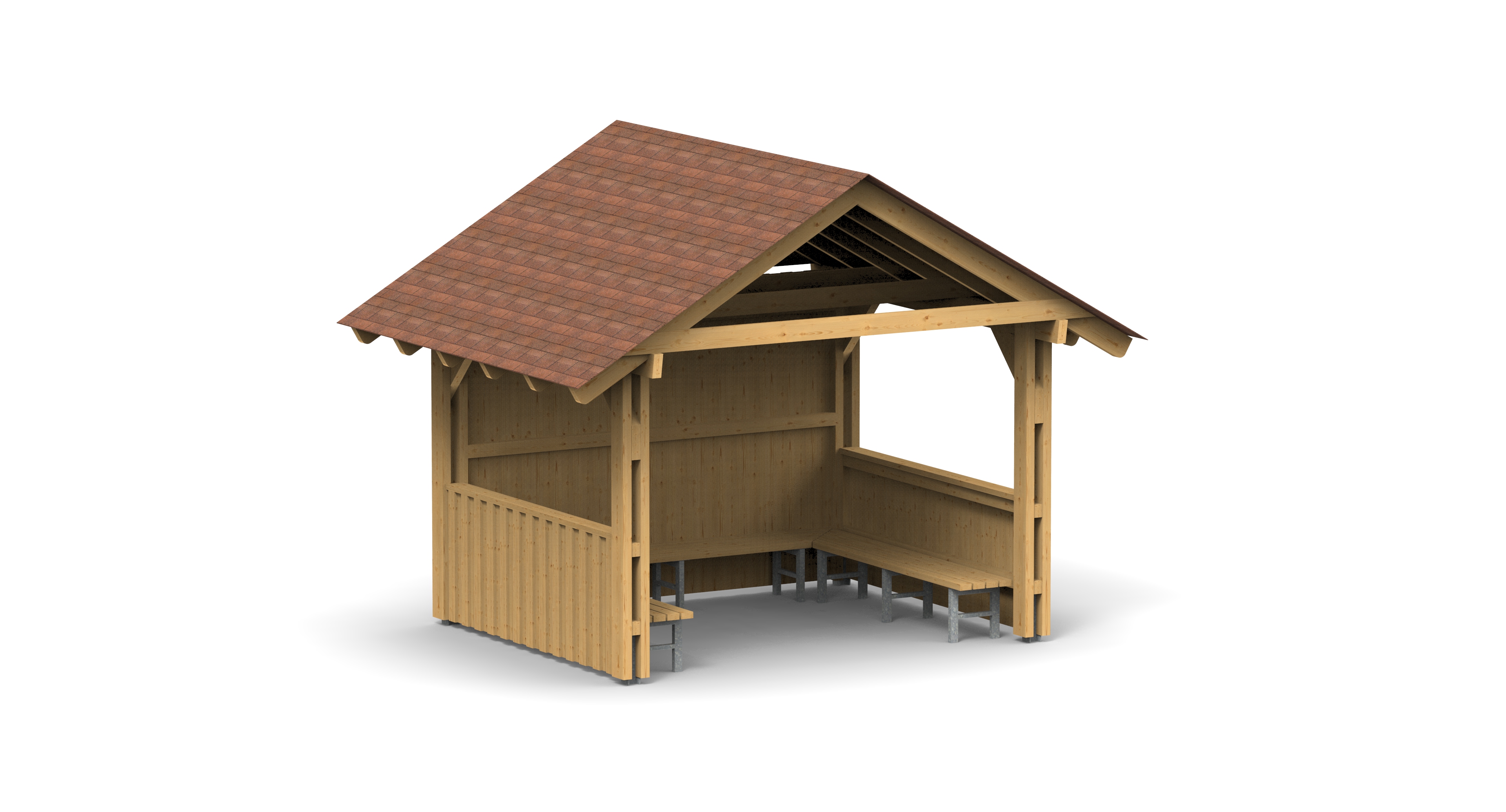 Altán čtvercového půdorysu se třemi lavicemi.