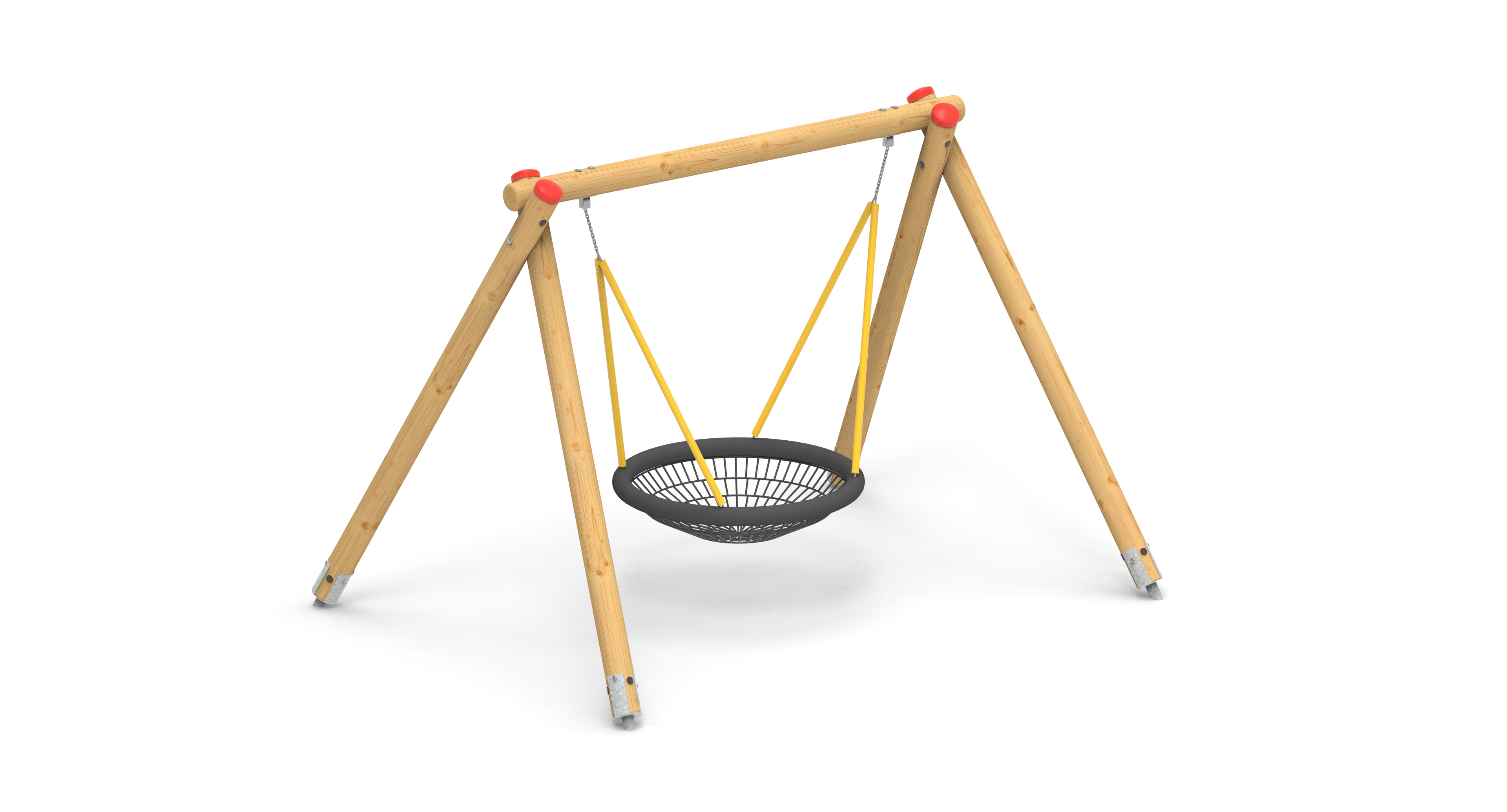 Houpačka "ptačí hnízdo" v dřevěném provedení. Sedák průměru 120 cm s lanovým výpletem. Provedení vhodné do mateřských škol.
