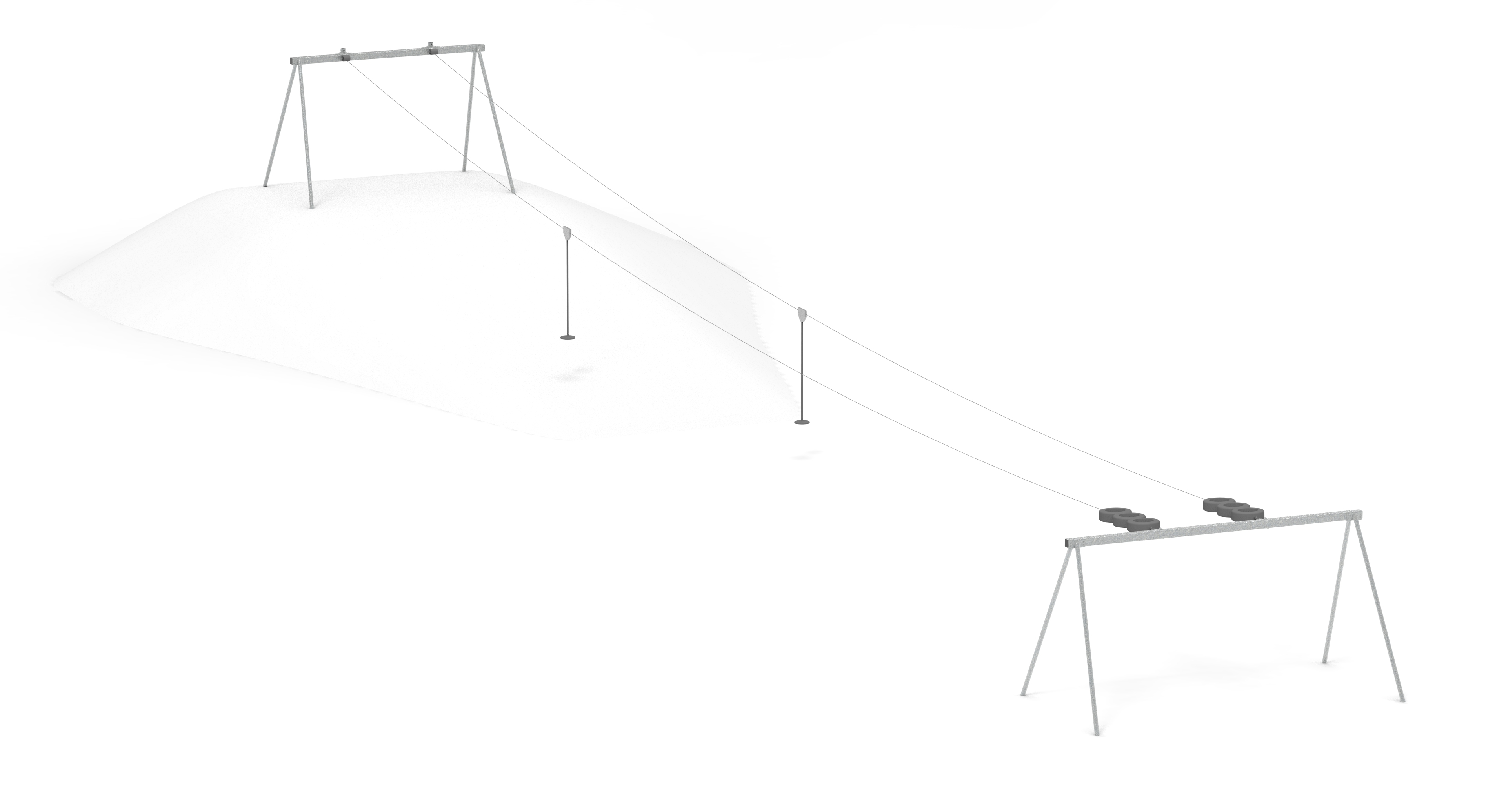 Paralelní lanovka. Souběžná jízda dělá z tohoto prvku nejlepší atrakci na hřišti.