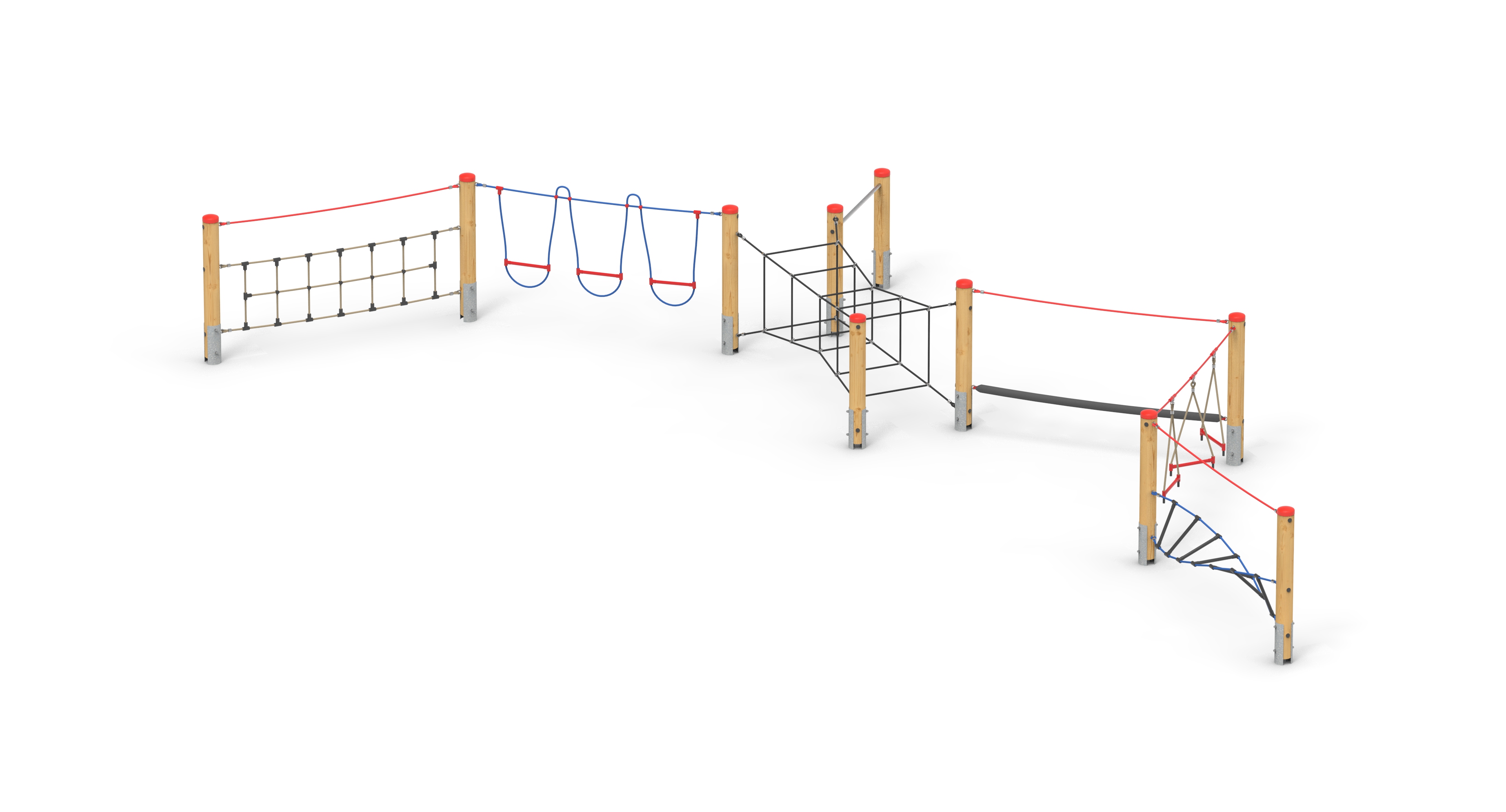 Velkorysá sestava, která pojme najednou až 25 dětí. Zahrnuje síť, hada, tunel, hadici, věšák, vývrtku a 1 m vysokou hrazdu.
