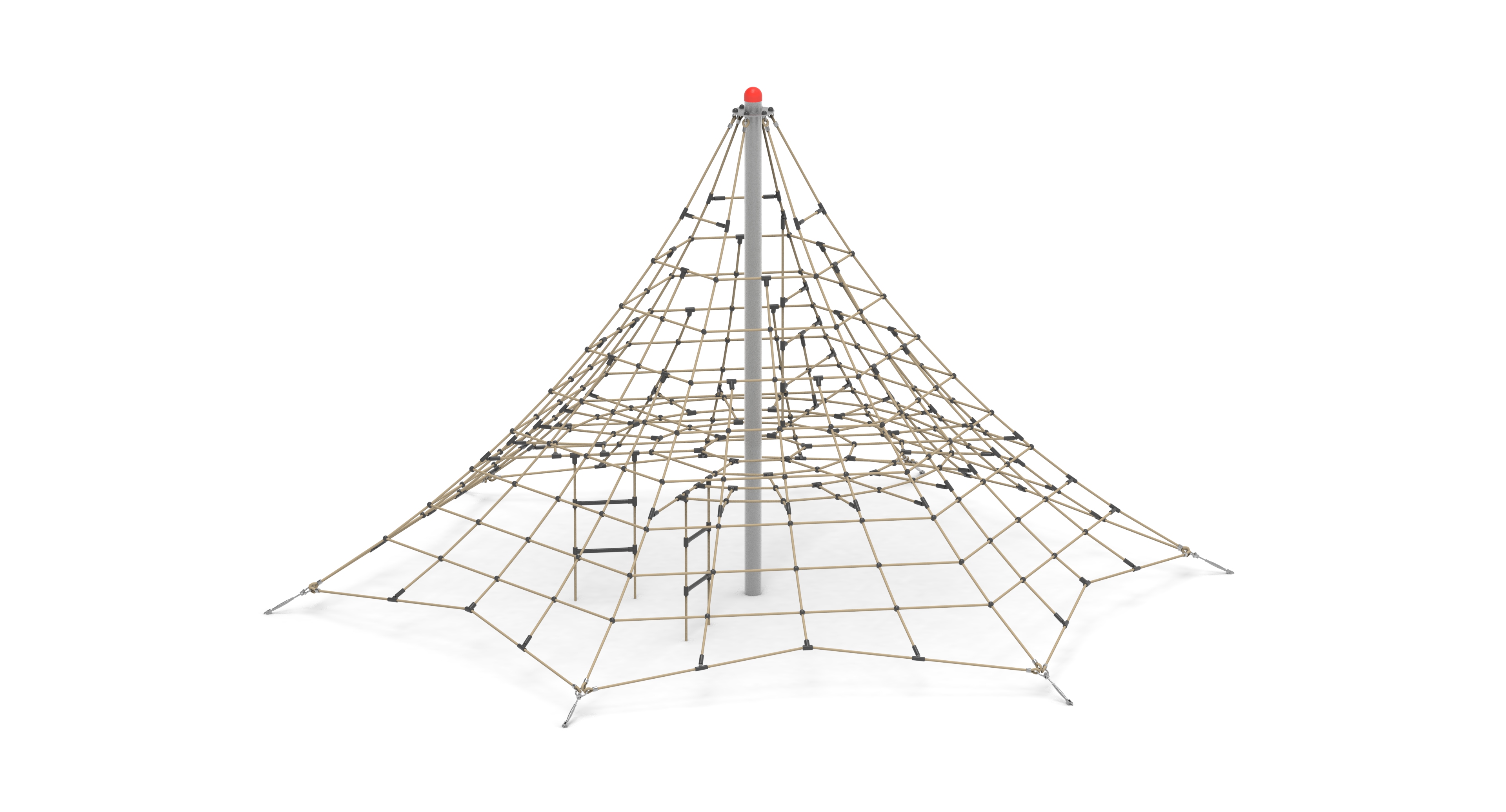 Lanová šestiboká pyramida se dvěma vstupy a síťovým mezipatrem přístupným po žebříčcích. Výška 3,5 m. Výška pádu je 1 m, takže z hlediska tlumících účinků trávník vyhovuje. S ohledem na údržbu plochy pod sítí však doporučujeme zajistit povrch proti prorůstání trávy a plevele (umělý trávník, pryžová dlažba, geotextilie + písek).