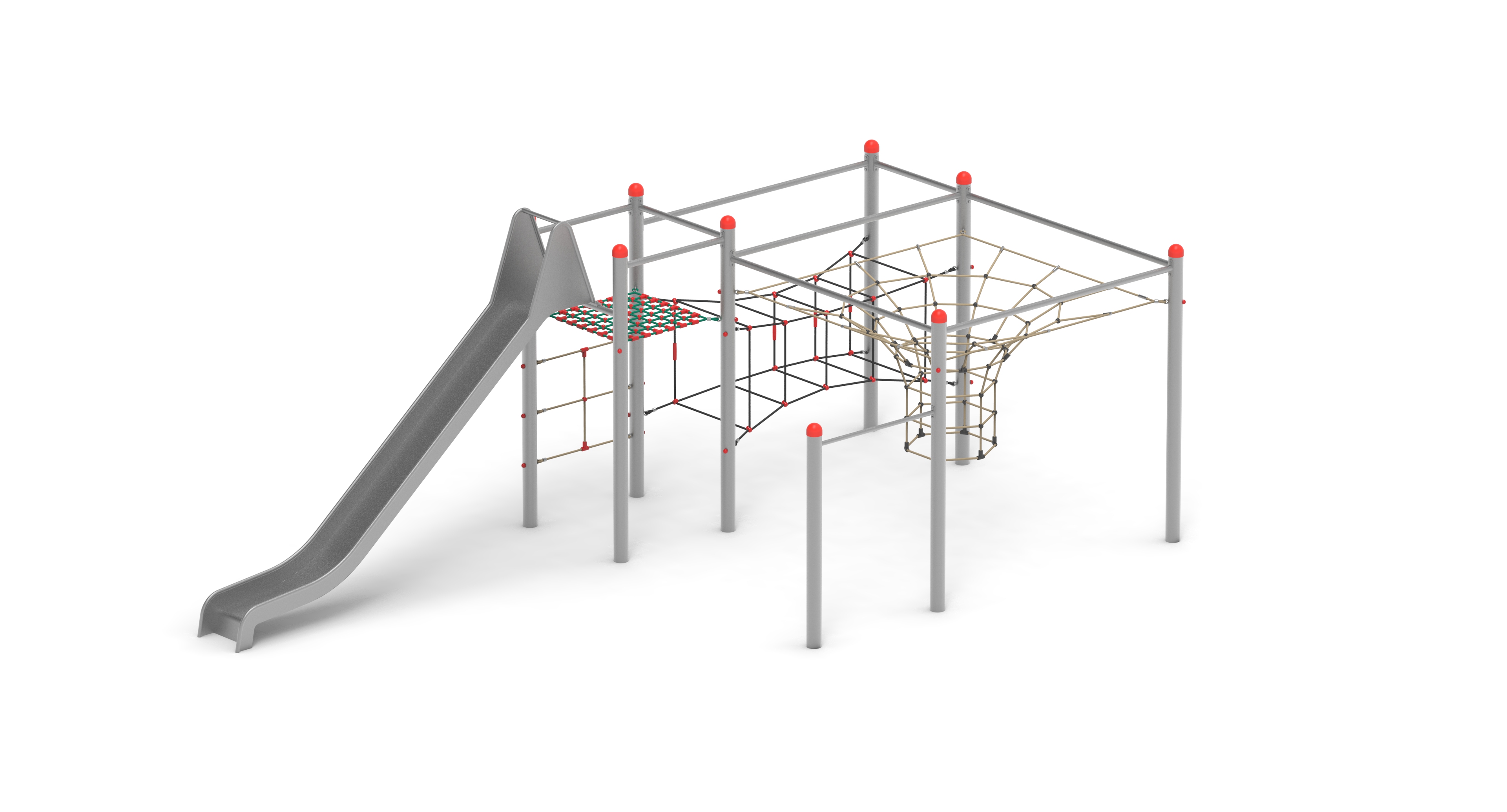 Na prostor méně náročná atraktivní sestava se skluzavkou. Hrazda výšky 1,6 m.