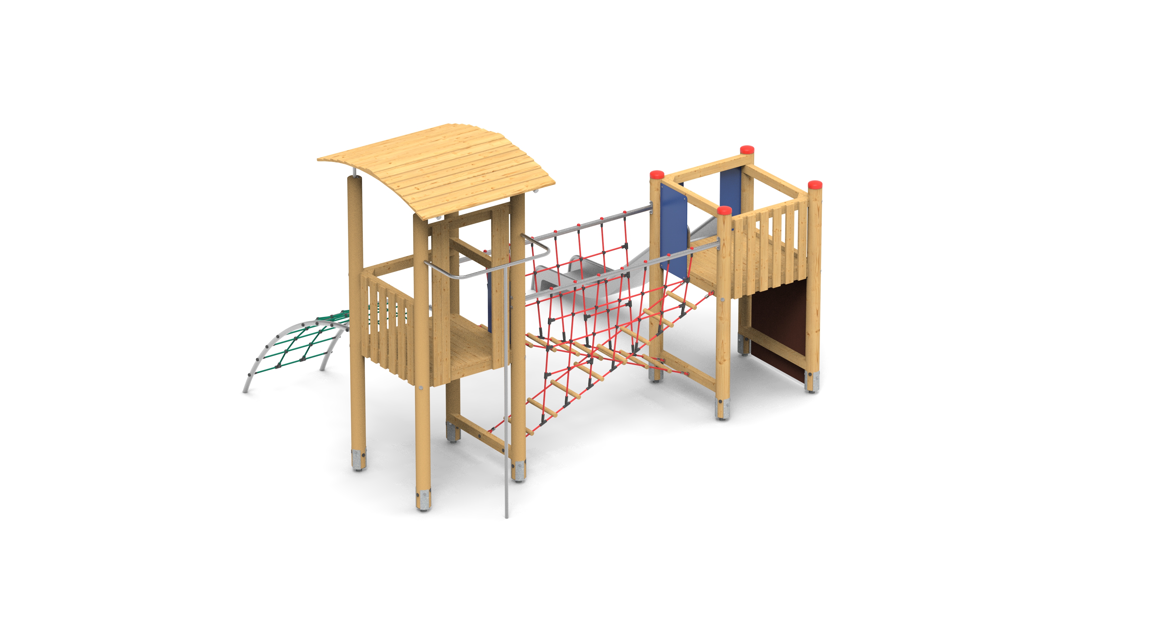 Dvě čtyřboké věže spojené mostem "cik-cak", který slouží současně jako výstup na obě věže. Výška podest 1,4 m.