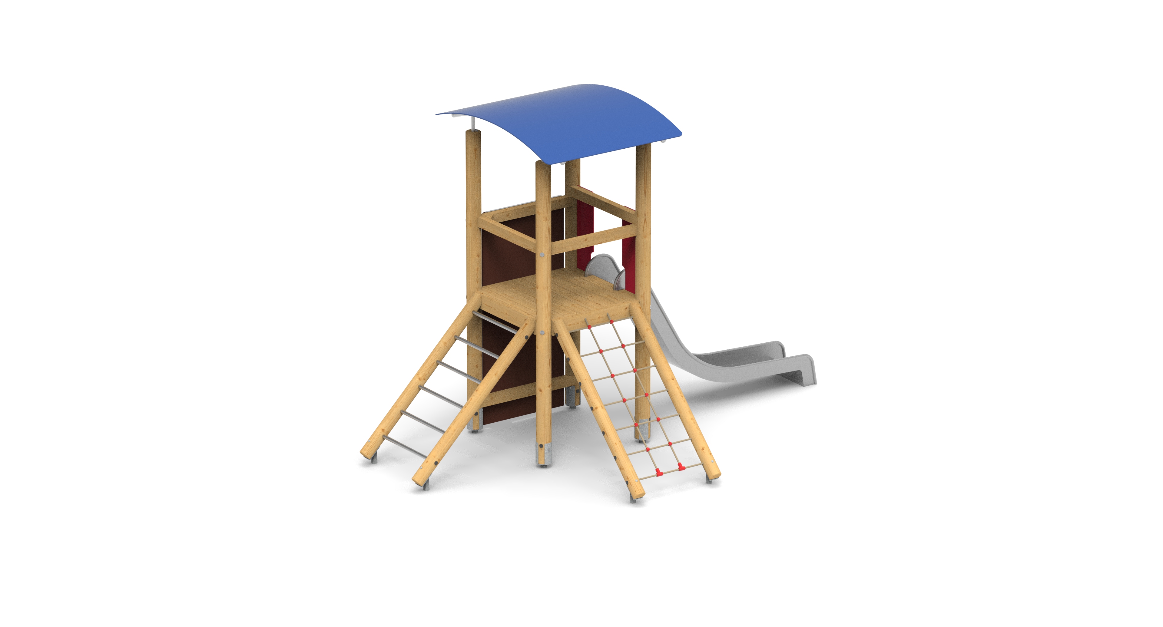Čtyřboká věž s "dobrodružnou" skluzavkou, dvěma šikmými výstupy a lezeckou stěnou. Výška podesty 1,4 m.