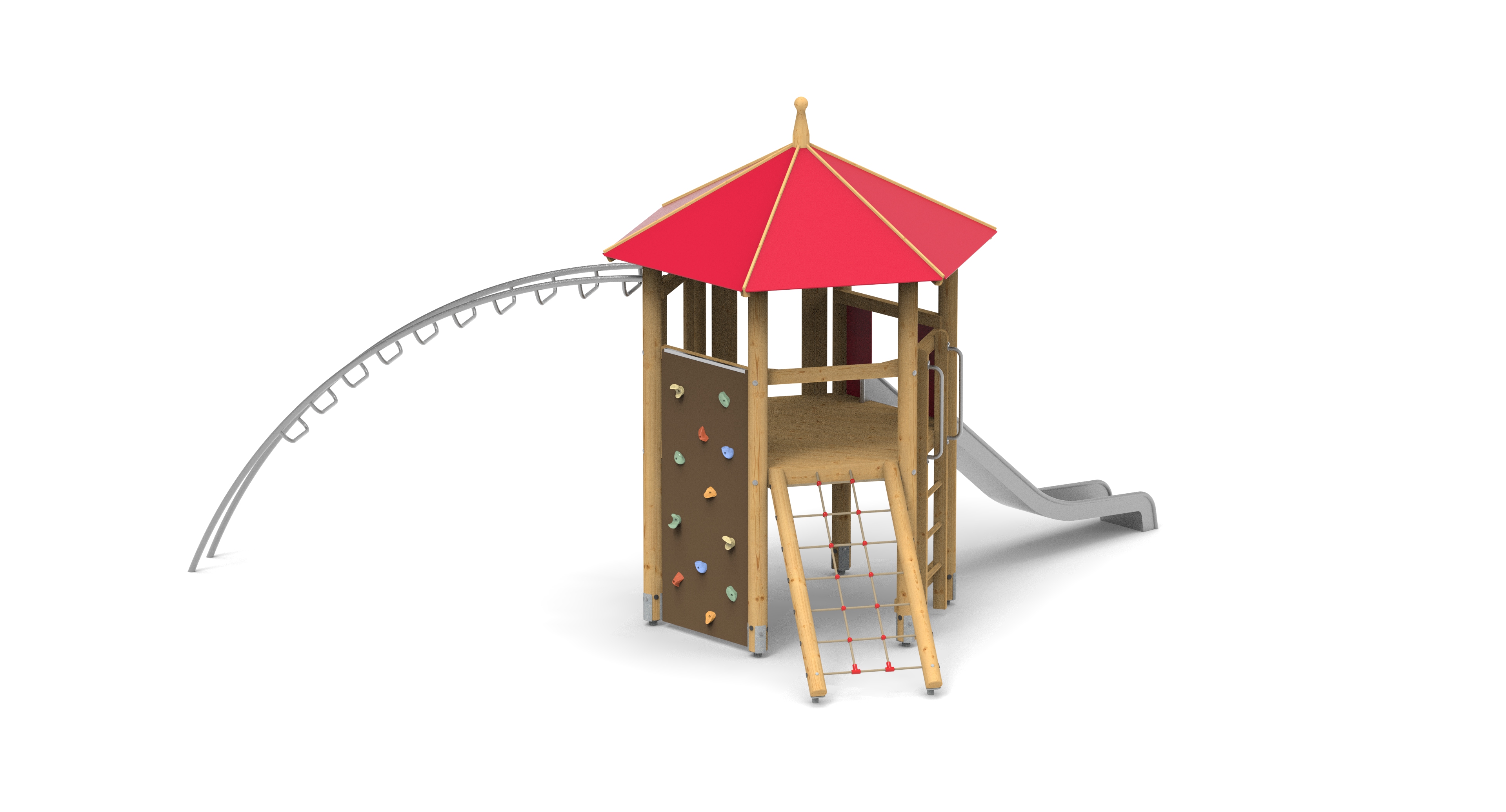Šestiboká věž se střechou a fyzicky náročnějšími výstupy. Ideální pro školáky na 1. stupni ZŠ.