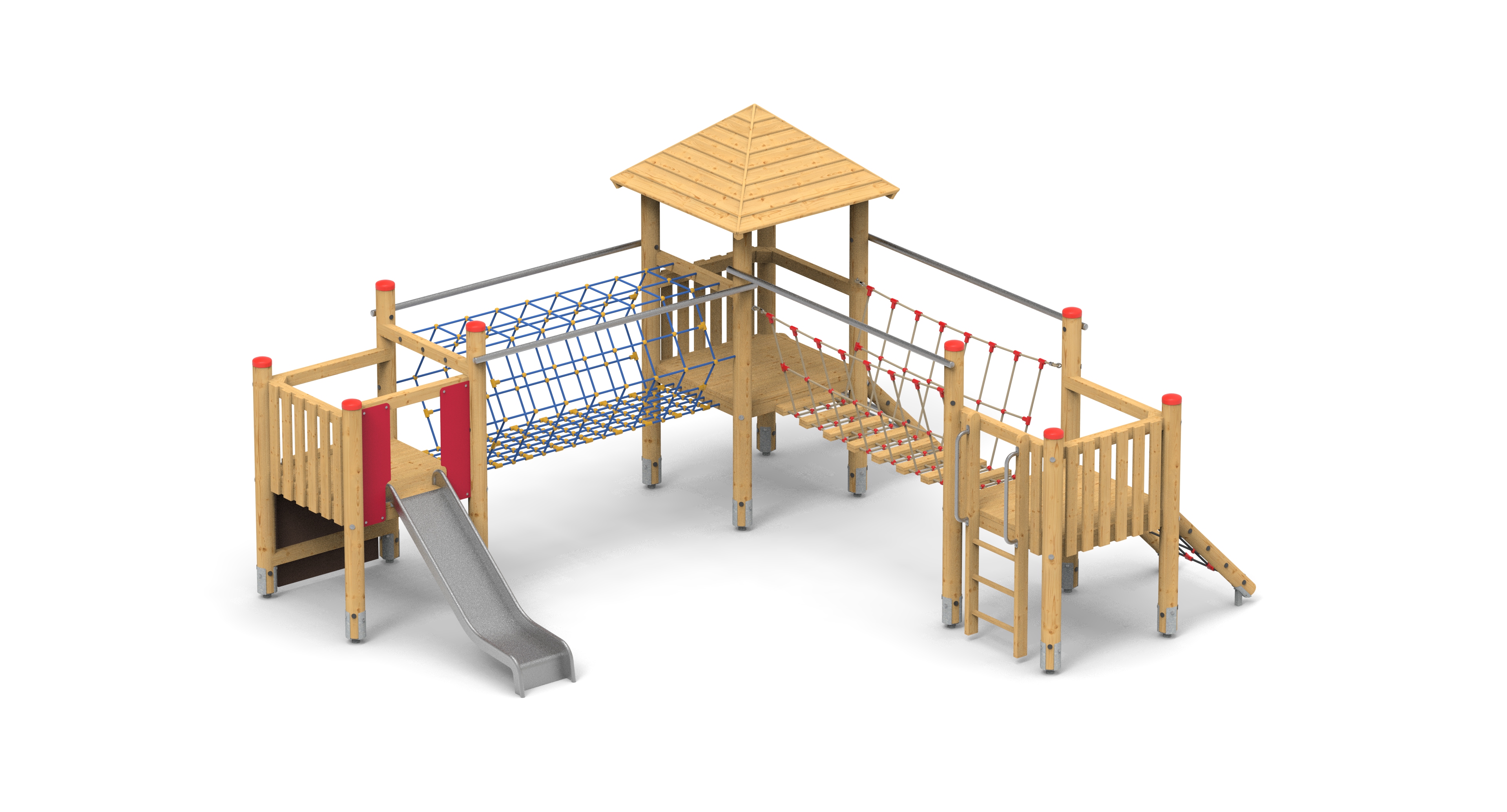 Tři čtyřboké věže s výškou podest 1 m. Ideální sestava pro malé předškoláky.
