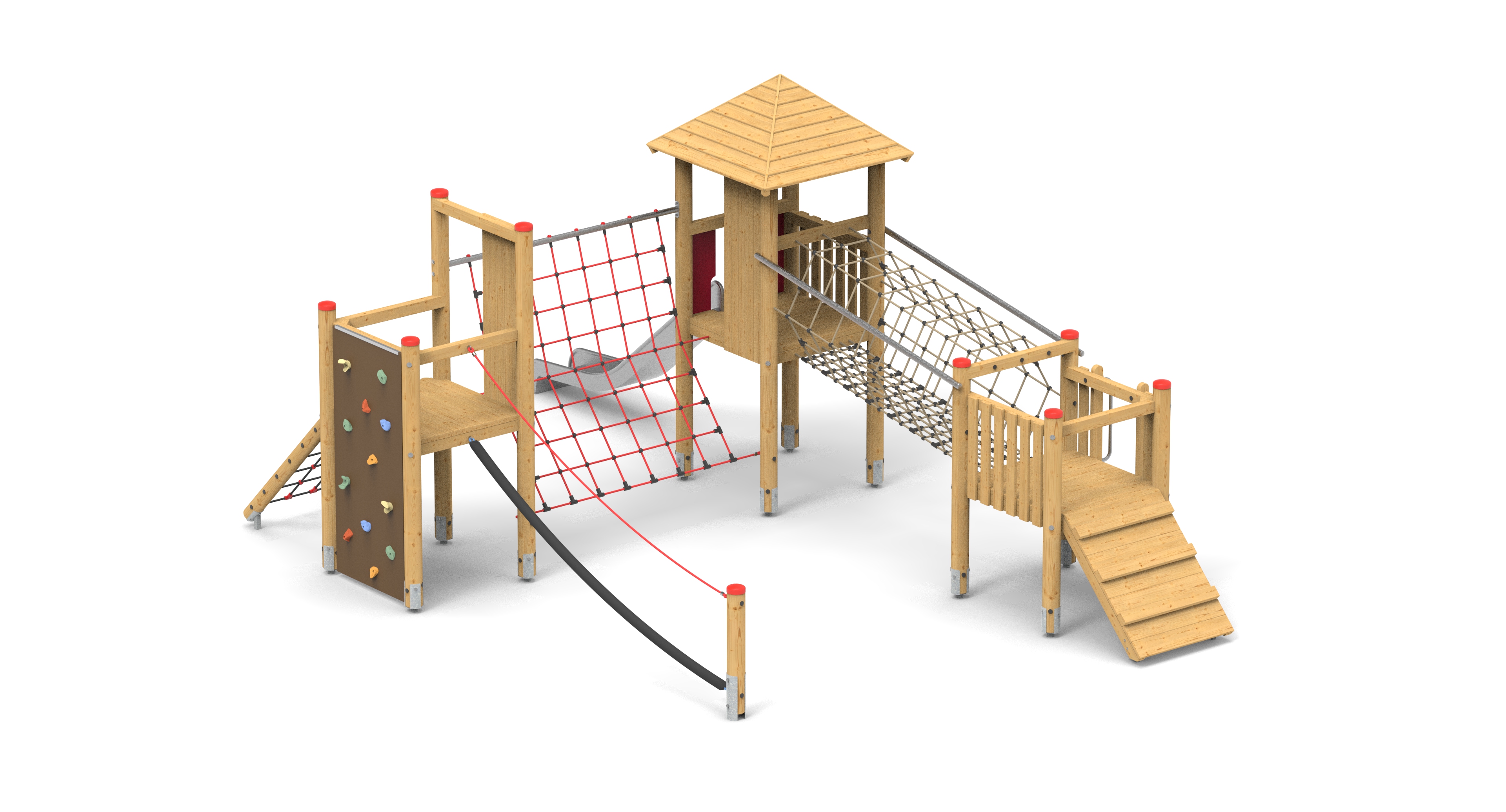 Tři čtyřboké věže propojené hustým tunelem a mostem typu "převis", který slouží současně jako výstup na věže ze země. Výšky podest 1,4 a 1 m.