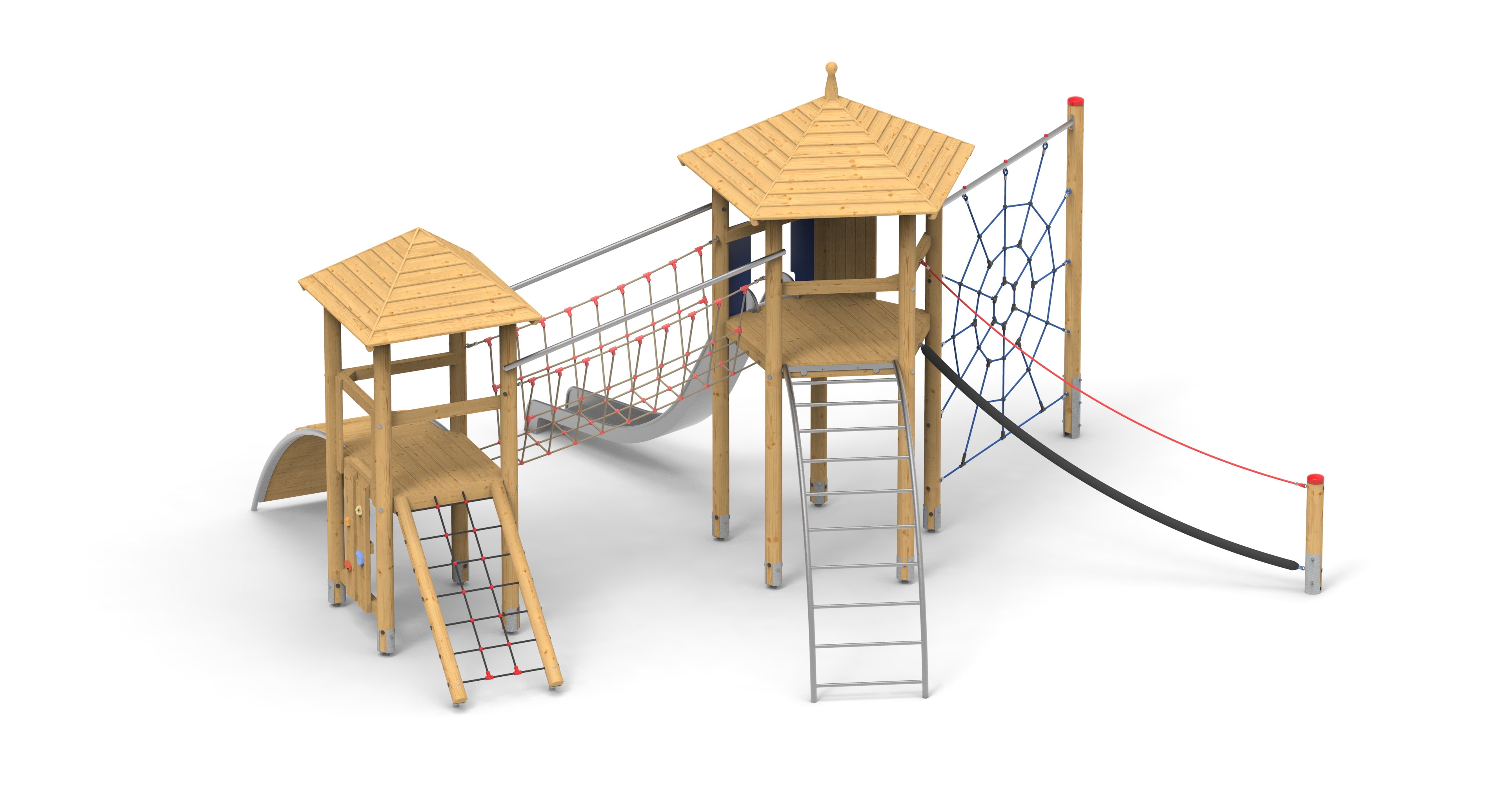Prolézací kombinace pětiboké a čtyřboké věže. Výška podest 2 a 1,4 m.