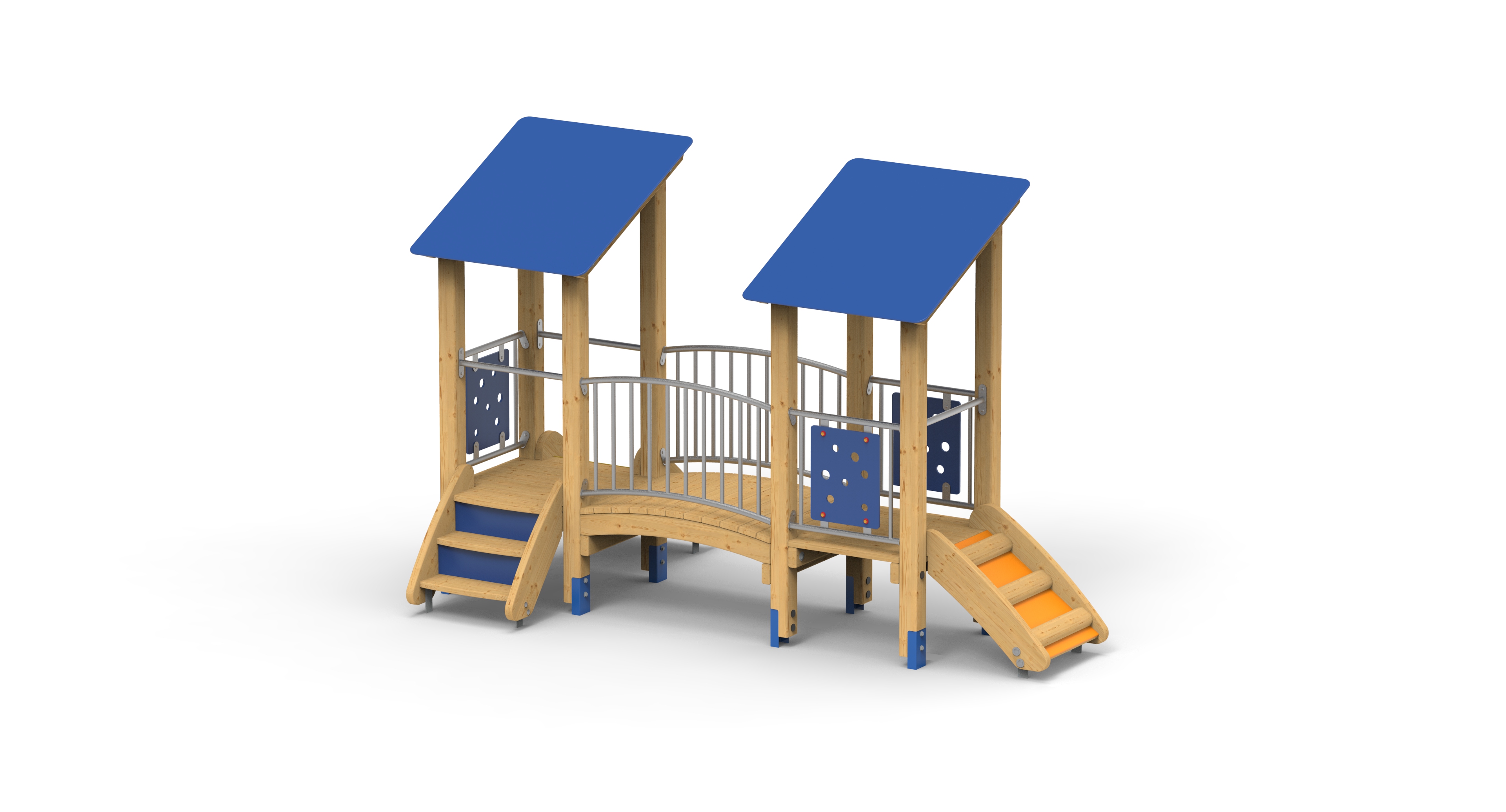 Dvouvěžová sestava s obloukovým mostem a dvěma výstupy. Výška podest 0,5 m.
